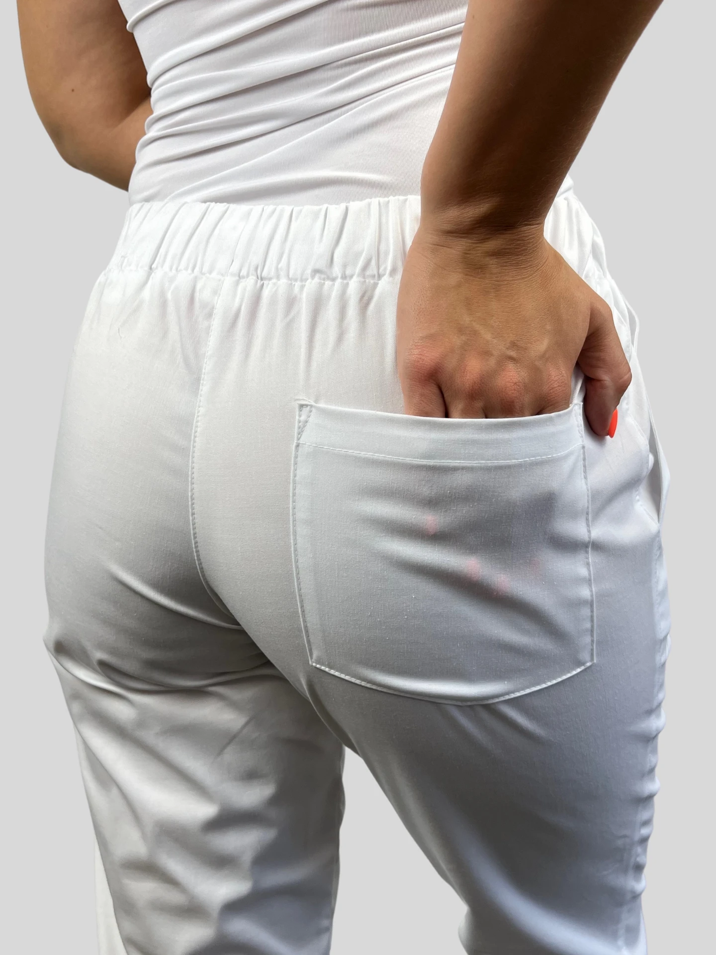 Jogger style pants have gained huge popularity in recent years and are now available in the healthcare profession as well. Thanks to the special elastane material composition, these pants are extremely comfortable and flexible. The added amount of elastane ensures a perfect fit and freedom of movement. So no matter what active activity you do, you can be sure that the pants will follow you in every move.