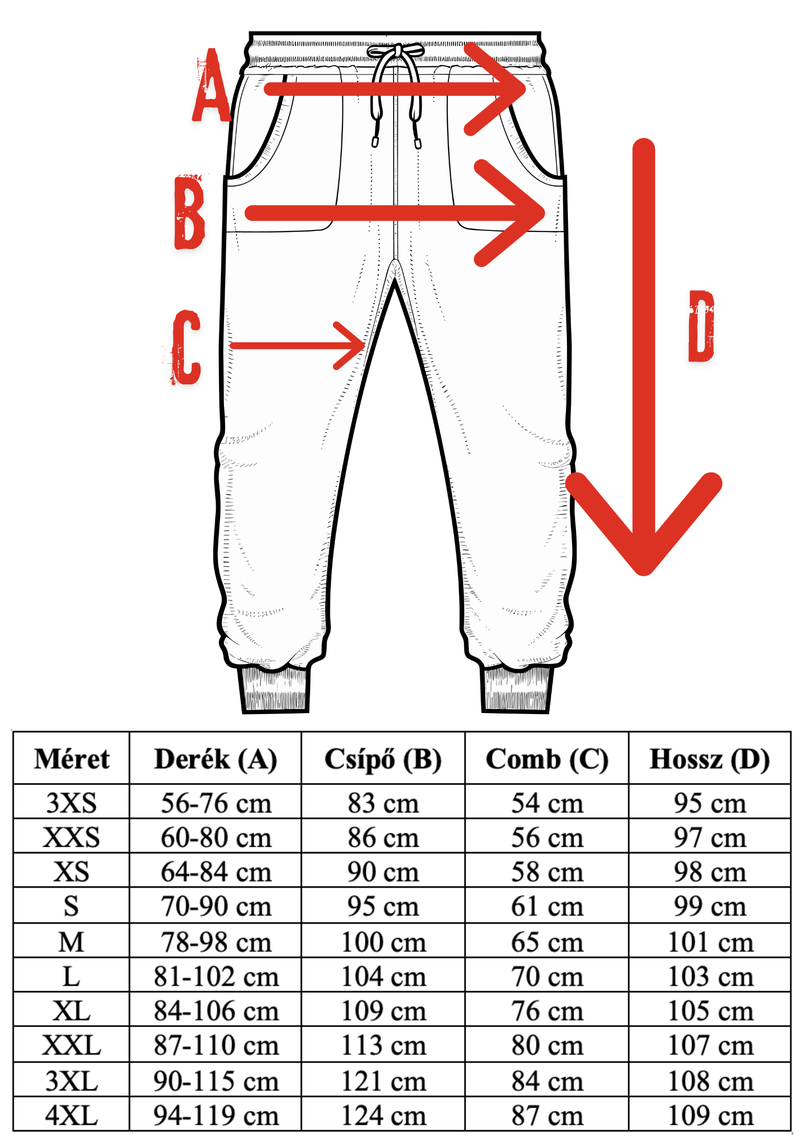 Nadrág méret | XXS, XS, S, M, L, XL, XXL |